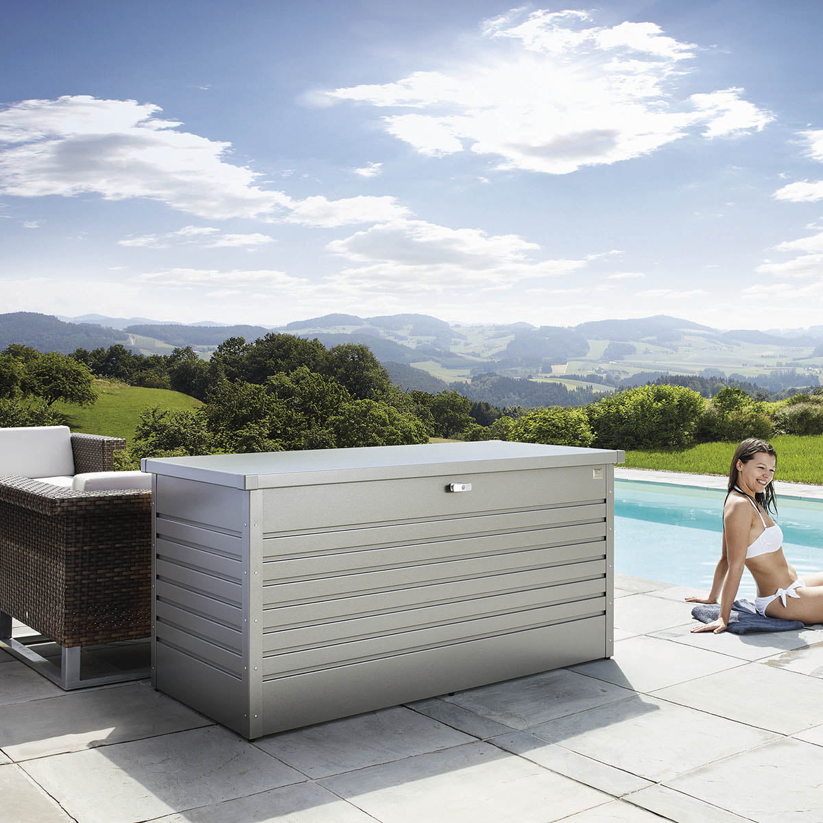 Praktisk oppbevaringsboks til utendørs bruk. Ideel til oppbevaring av hageputer, strandstoler, leker og sports- og campingutstyr. Regntett design med usynlig, integrert gjennomlufting. Kan låses ved hjelp av hengelås (ikke inkludert). Lokket åpnes og lukkes enkelt med en gasstrykkfjær. Biohort bruker varmgalvaniserte stålplater med en ekstra varmebehandling, og med polyamid på sine produkter. Bruken av materialer av topp kvalitet, gjør at Biohort trygt kan gi 20 års garanti mot korrusjon. Finnes i flere størrelser. Enkelte Hageland-avdelinger har disse produktene på lager, og varen kan da hentes der. Ordren sendes i de fleste tilfeller fra eksternt lager. Om ordren leveres direkte fra leverandør, kan den spores gjennom deres distributør. Disse ordrene settes i bestilling etter forhåndsbetaling til valgt butikk.