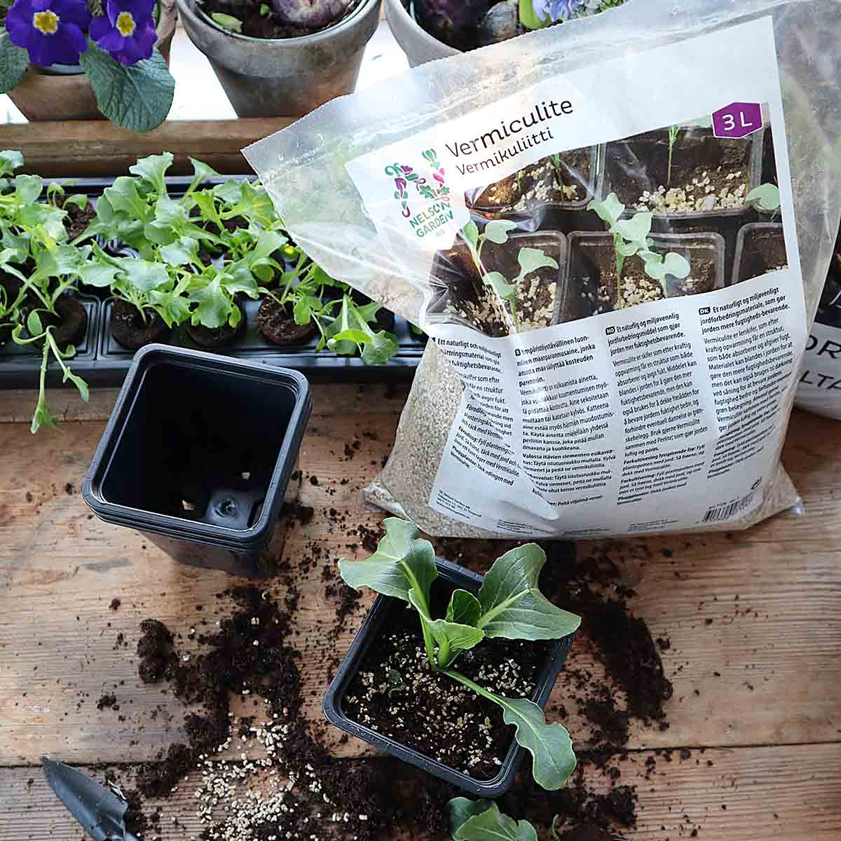 Et naturlig og miljøvennlig jordforbedringsmiddel. Vermiculite er skifer som etter kraftig oppvarming får en struktur som både absorberer og avgir fukt. Middelet kan blandes i jorden for å gjøre den mer fuktighetsbevarende, men den kan også brukes for å dekke frøsådden for å bevare jordens fuktighet bedre, og forhindre eventuell dannelse av grønskebelegg. Bruk gjerne Vermiculite sammen med Perlite, som gjør jorden luftig og porøs. Forkultivering lysspirende frø: Fyll plantepotten med jord. Så frøene, og dekk med Vermiculite. Forkultivering: Fyll plantepotten med jord. Så frøene, dekk med jord, og strø over et tynt lag med Vermiculite. Pluggplanter: Dekk med Vermiculite.