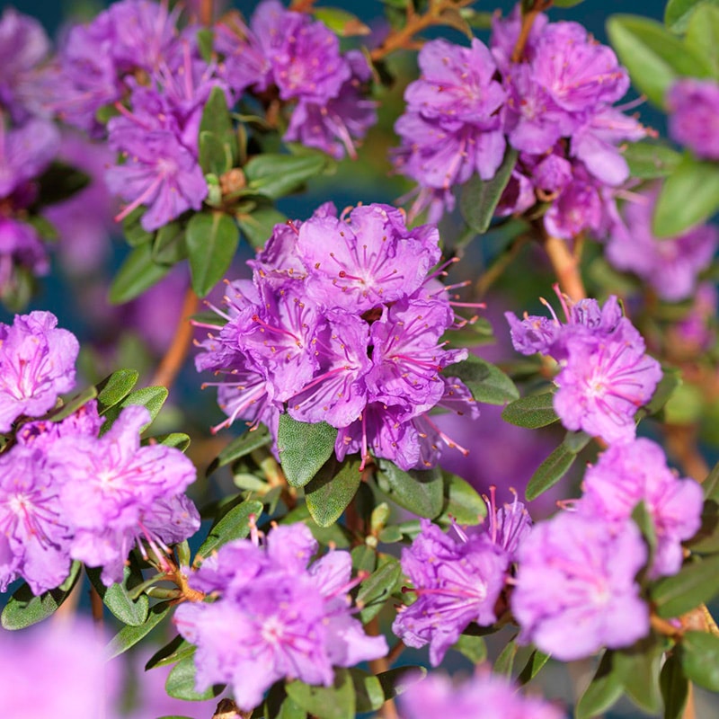Dvergrhododendron 'Ramapo' er en hardfør, lav sort med vakkert blågrønt bladverk og tueformet vekst. Sorten får rosalilla knopper med lyst fiolette blomster. Nøysom plante, men trives best i sol. Ca. høyde etter 10 år er 50 cm.