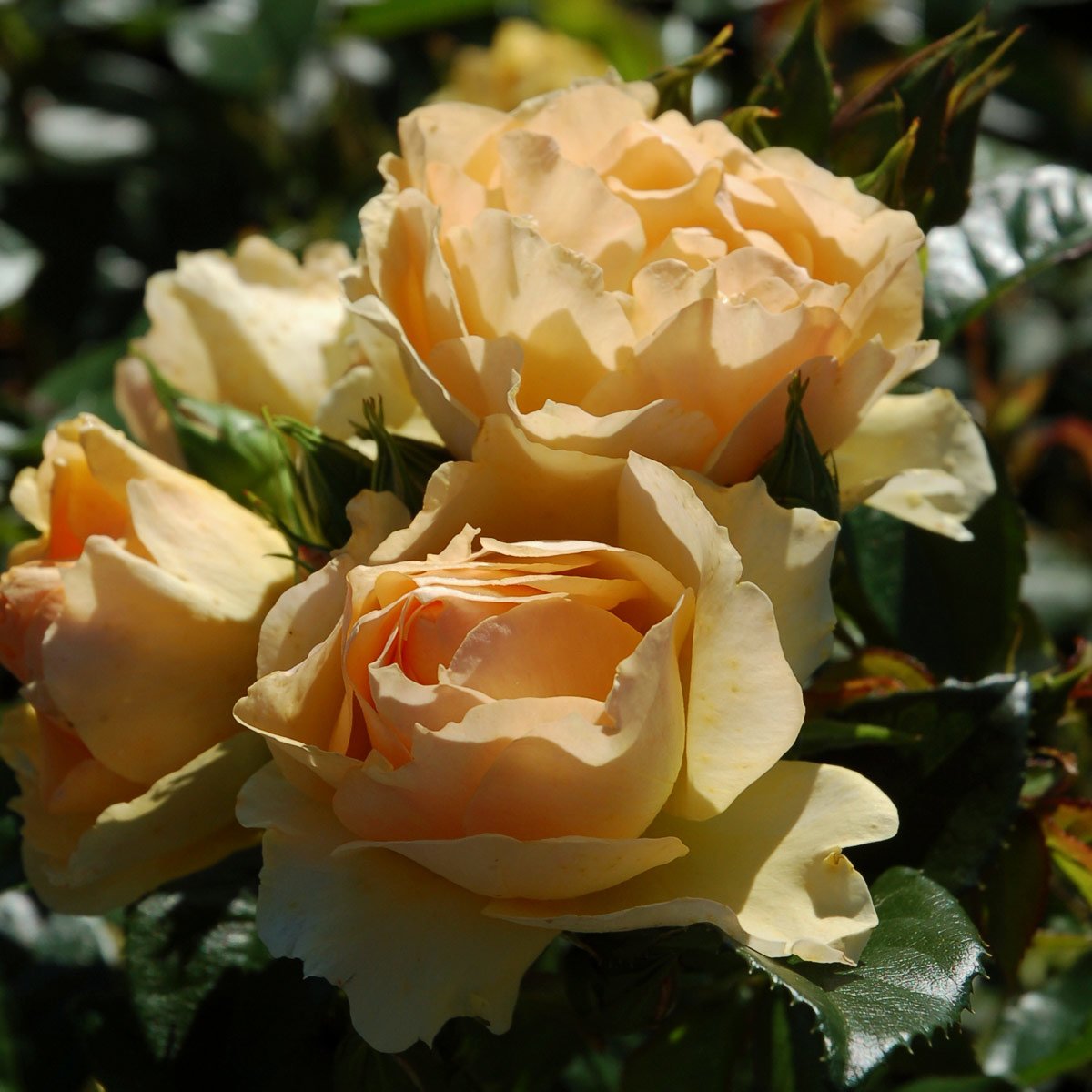 Klaserose 'Hansestadt Rostock' blomstrer med aprikosfargede blomster. Blomstene er fylte, duftende og kommer i store klaser. Den egner seg godt både i bed, og gjerne også i større rabatter.